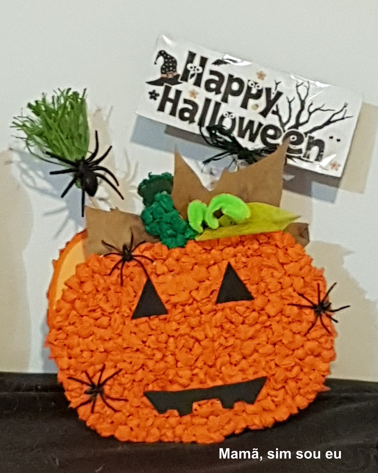 Para o Halloween, trabalho de Inglês (2017) a minha filha fez uma linda abóbora, a qual ganhou o 1º lugar num concurso da biblioteca da escola.
